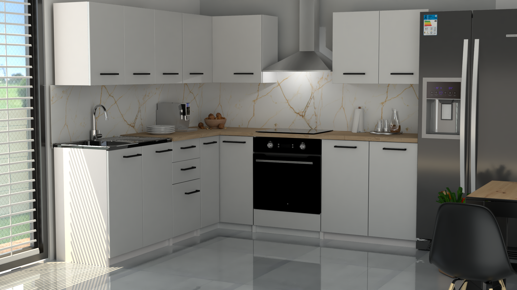 Zestaw mebli kuchennych GERMAN NEO N2 Biały Mat – nowoczesna kuchnia narożna L z blatami