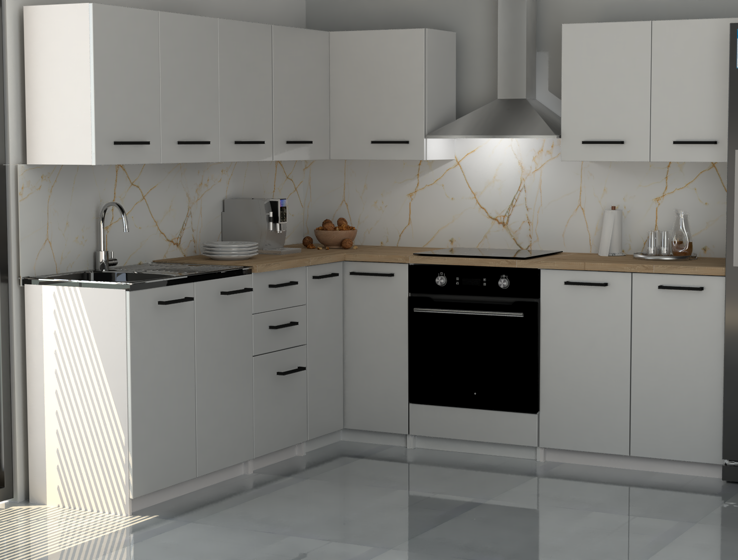 ✅ Gotowy zestaw kuchenny narożny w układzie L – idealny do aneksu i małych kuchni