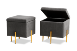 Pufa SOX otwierana ze schowkiem welurowa kufer tapicerowany glamour na złotych nogach do salonu i sypialni SZARY  × 1